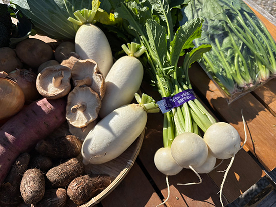 香り豊かなしいたけ、ほくほく甘いさつまいも、煮物に最適な大根・かぶ、