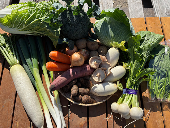 香り豊かなしいたけ、ほくほく甘いさつまいも、煮物に最適な大根・かぶ、