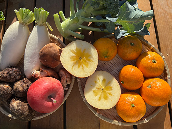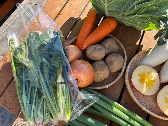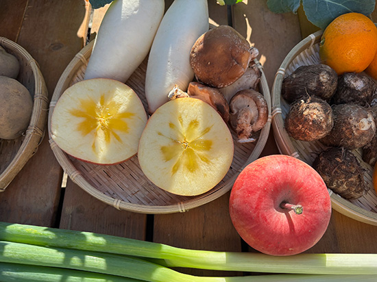 この時期にしか採れない希少な蜜入りリンゴと、採れたて新鮮野菜をたっぷり詰め込みました。